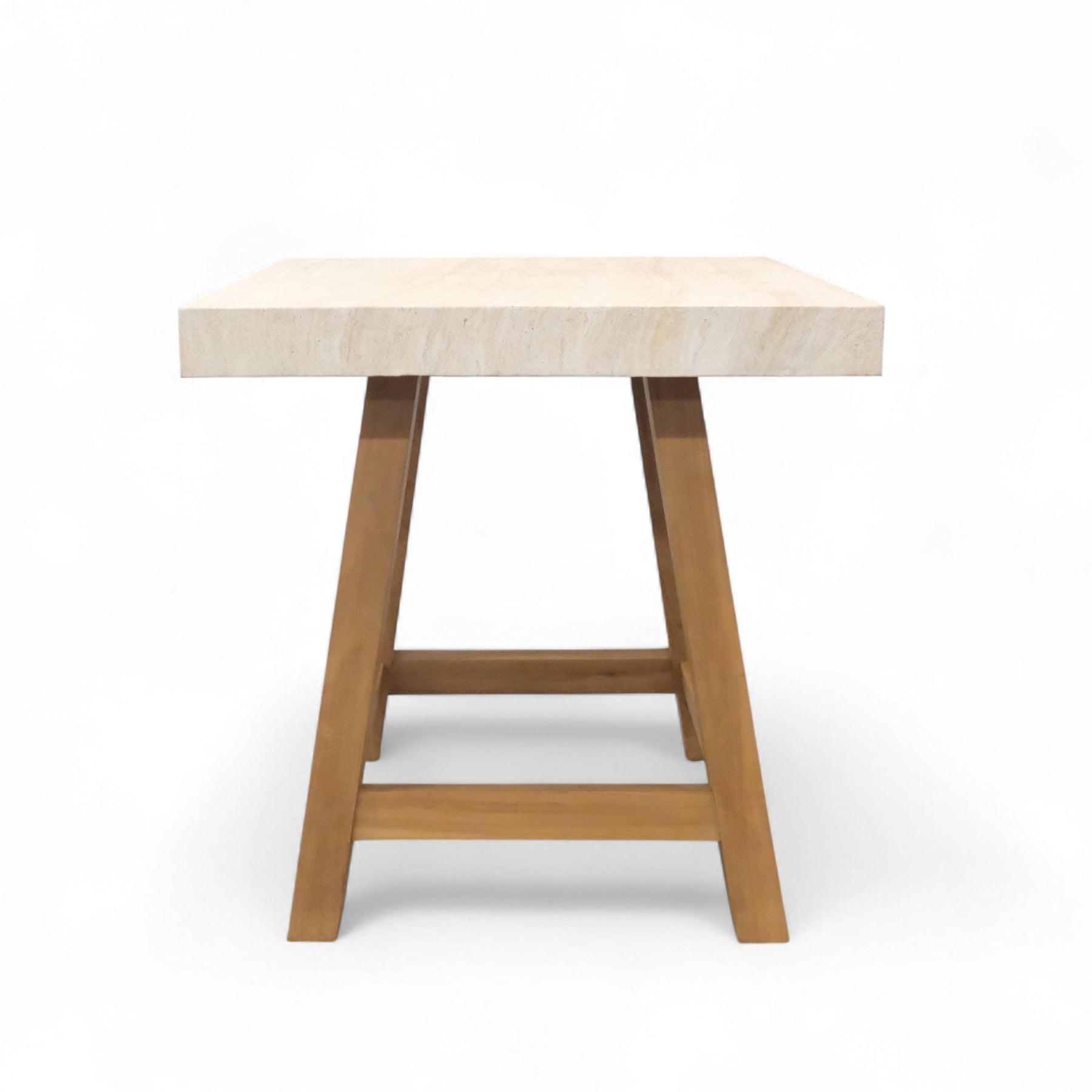 Travertine Concrete and Teak Outdoor Bar Table