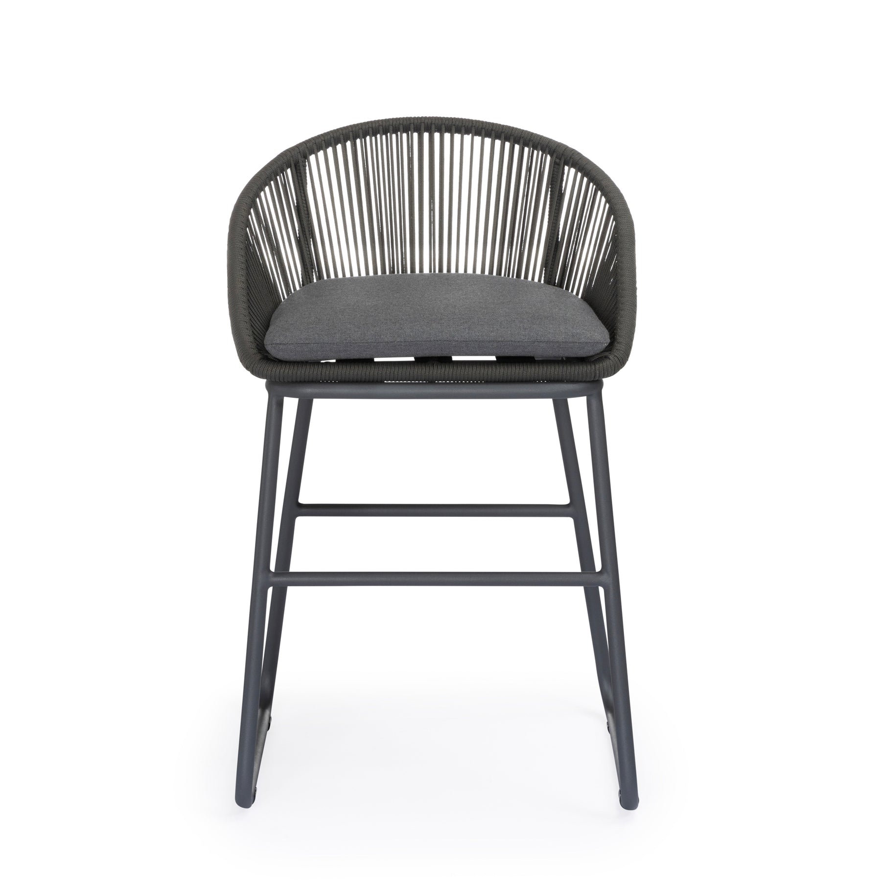 The Urban Rope Outdoor Counter Height Stool combines contemporary style with everyday comfort. Its durable powder-coated aluminum frame features a sculptural backrest with double-layered woven outdoor-grade rope. Plush all-weather cushions ensure lasting comfort, making this stool perfect for your outdoor counter space.