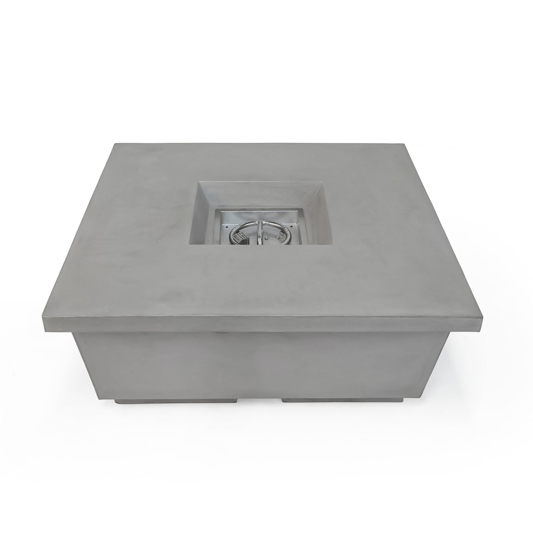 Experience year-round outdoor enjoyment with our smokeless, sleek Polished Concrete Fire Pit. Crafted from a concrete composite, it exudes modern elegance. Choose your preferred shape and color for a personalized touch. The center pit radiates just the right amount of heat, complemented by fire glass that disperses warmth evenly. Your guests will adore the cozy ambiance it creates. Propane tank attachment with a 4' hose is included. Easy to set up, it can be connected to a propane tank (color-matched concrete storage tank is available for purchase, which conveniently doubles as a side table) or a natural gas line by a professional (for natural gas, a conversion kit is available for purchase). Embrace the beauty of outdoor living with our Polished Concrete Square Fire Pit. *Please note the Teak Warehouse delivery team is not responsible for fire pit installation.