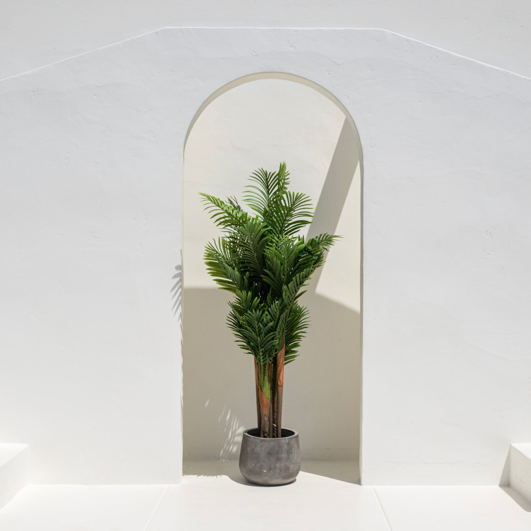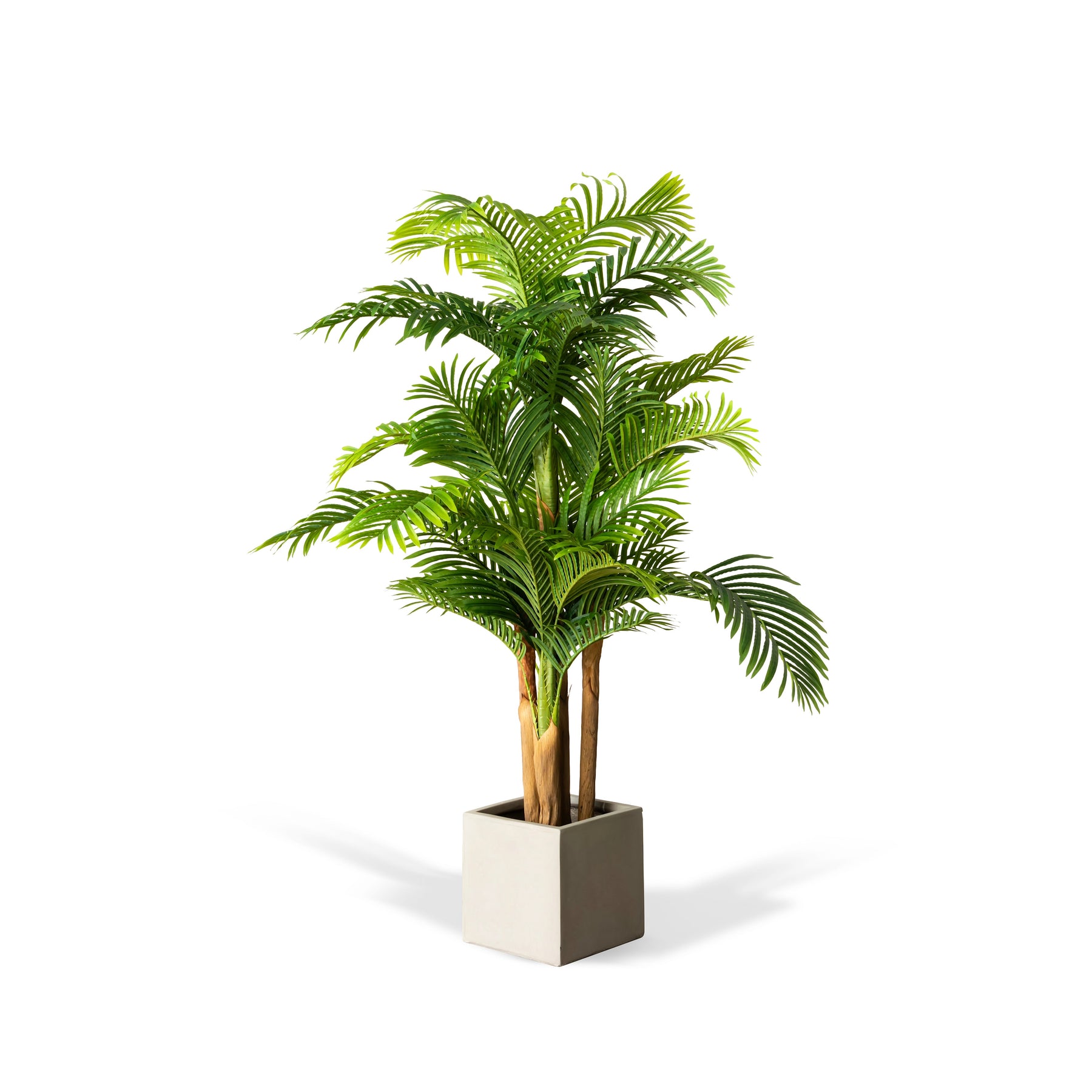 The Artificial Areca Palm Tree is a stunning replica of the natural Areca palm, renowned for its feathery and arching fronds. It features numerous slender, green leaves that create a lush and tropical appearance. The tree is designed to be lifelike, with its leaves having a texture and color that closely resemble real palm foliage. This artificial tree is perfect for adding a touch of nature to any indoor space, bringing a tropical vibe to homes, offices, or commercial areas without the need for maintenance. Best suited for indirect sunlight. To clean, gently wipe with a soft damp cloth. Abrasive cleaners are not recommended. *Please note: planter is sold separately.