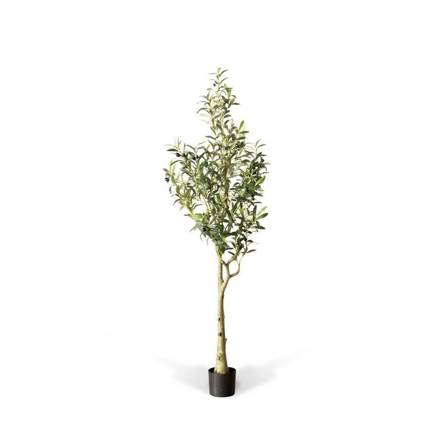 The Artificial Olive Tree is a stunningly realistic replica of the beloved Mediterranean plant, known for its graceful, silvery-green foliage and charming olives. Crafted with meticulous attention to detail, each leaf and olive is carefully shaped and colored to mimic the natural beauty of a real olive tree. The artificial tree is nestled in a discreet pot, providing the flexibility to accommodate any size or shape of the planter, making it a perfect addition to any home or office decor. Whether placed in a sunny corner, alongside other plants, or as a standalone feature, this Artificial Olive Tree brings a touch of nature's serenity and timeless elegance without the need for maintenance or care. Best suited for indirect sunlight. To clean, gently wipe with a soft damp cloth. Abrasive cleaners are not recommended. *Please note: planter is sold separately.