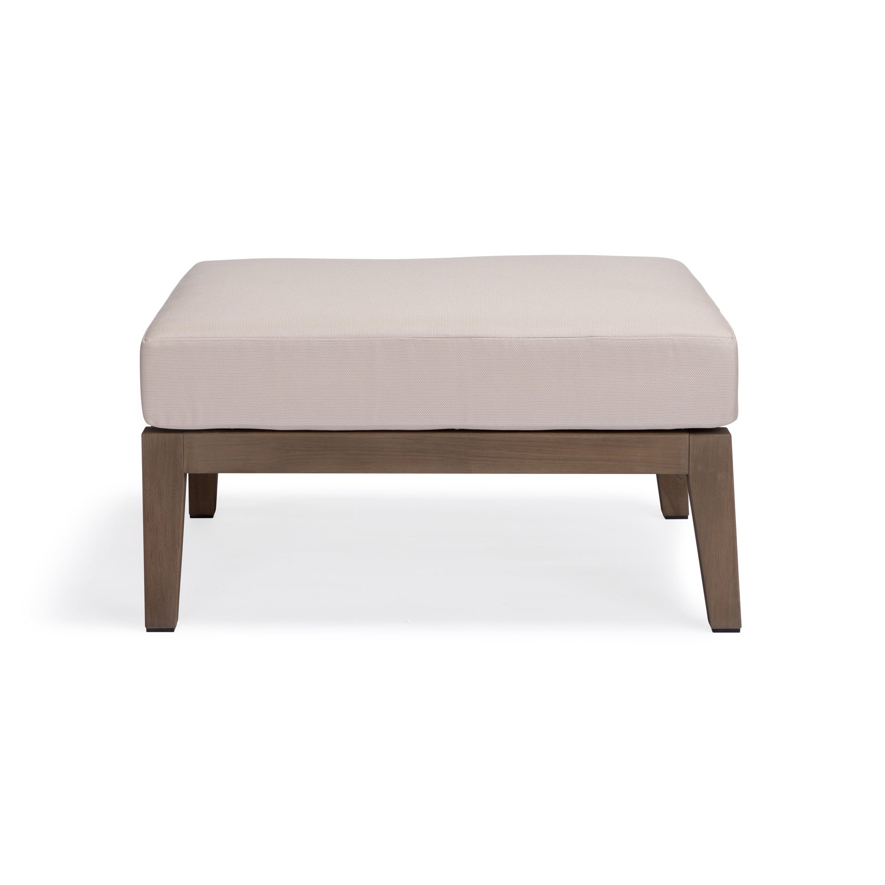 The Palermo Reclaimed Teak Outdoor Ottoman brings relaxed sophistication and practical comfort to your outdoor space. Expertly crafted from A-Grade teak with a wire-brushed Golden Care® Taupe finish, it captures the look of weathered, reclaimed wood while offering long-lasting durability. The water-based Teak Instant Taupe treatment enhances the natural grain and provides protection against the elements. Topped with a plush, all-weather cushion, this ottoman is perfect as a footrest, extra seat, or casual table. Designed to pair seamlessly with the Palermo Reclaimed Collection.