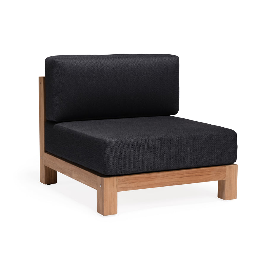 Designed with a low, wide profile, the Ibiza Teak Sectional Centre Chair offers generous space for relaxation. Its clean lines and substantial teak construction give it a solid, contemporary look without appearing bulky or oversized.