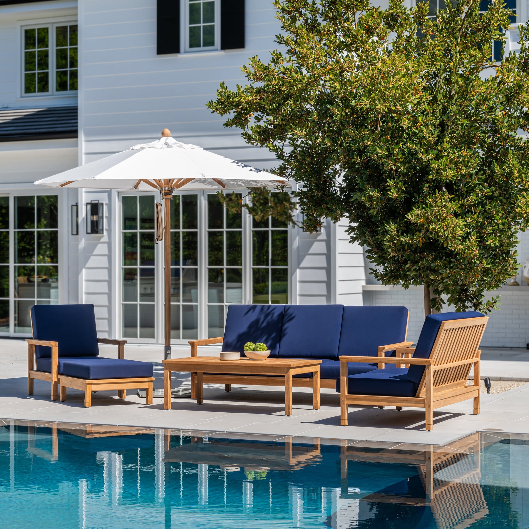 Experience the perfect blend of elegance and durability with the Santa Monica Octagon Umbrella, featuring solid A-grade teak, marine-grade stainless steel, and Sunbrella canvas. Crafted from high-quality teak wood, this umbrella offers both beauty and strength, making it a stylish and practical addition to any outdoor space. With a 2.5-inch solid teak pole and a heavy-duty powder-coated base, this umbrella is designed to withstand the elements while providing the perfect shade for your outdoor relaxation. The canopy can also be replaced over time, allowing you to update your outdoor décor with ease. Elevate your outdoor living experience with the Santa Monica Octagon Umbrella. (Base sold separately. Please note, it is recommended to purchase the Santa Monica umbrella base with this umbrella, as other single-pole bases may not be compatible due to the 2.5-inch pole diameter.)